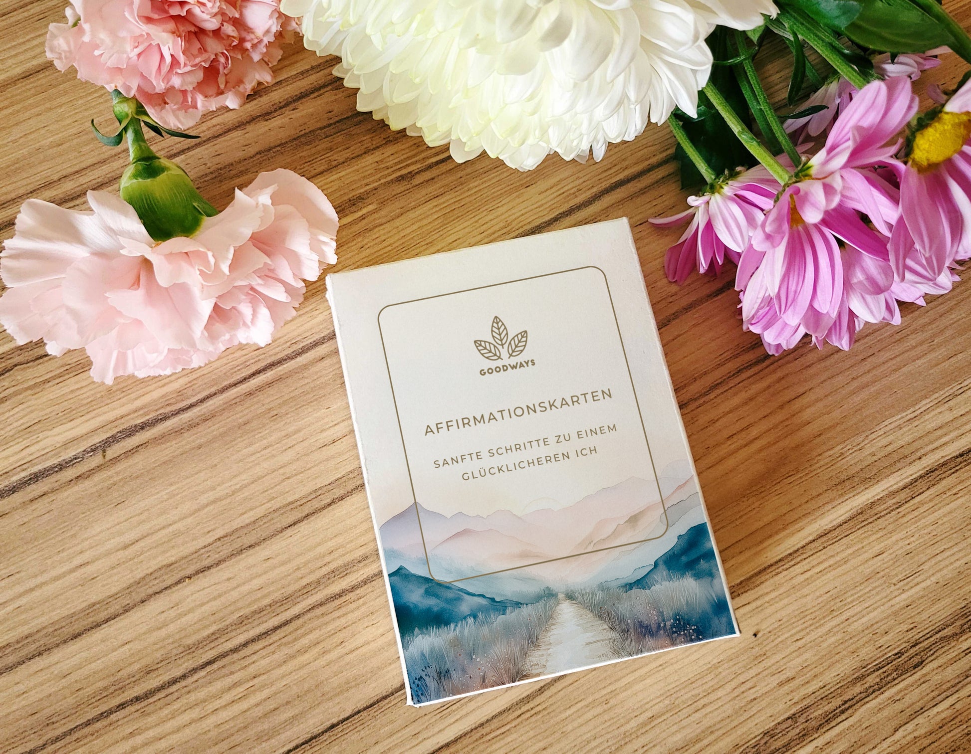 GoodWays Affirmationskarten bieten eine einfache und schöne Weise, mehr Frieden, Freude und Stärke in dein Leben zu bringen. Diese 40 Karten sind eine sanfte Inspiration, die dich zur Selbstreflexion und zu einer gütigeren inneren Stimme führt. Sie sind auch ein liebevolles und bedeutungsvolles Geschenk für einen Menschen, der dir am Herzen liegt.